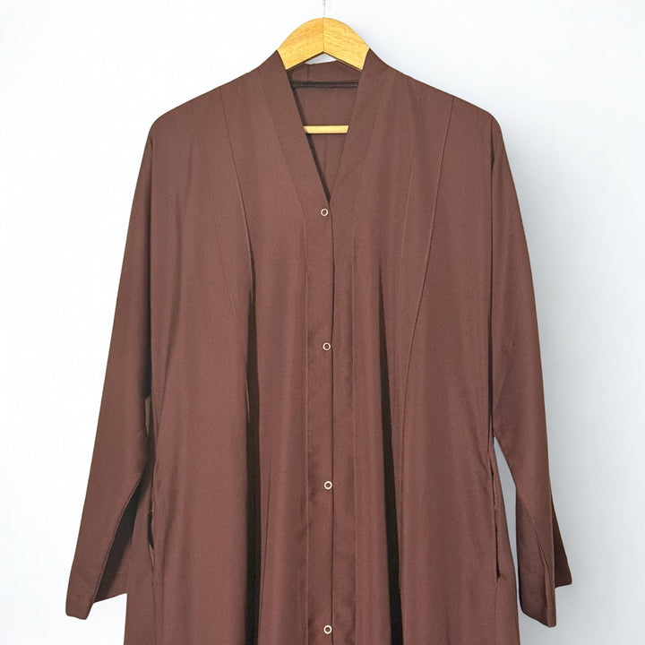 Dark Brown open Abaya with two sides Pockets and Front Plates.