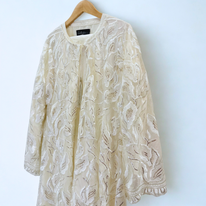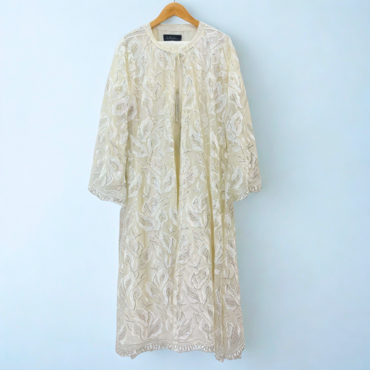 Lemon Yellow Sequence Net Gown with Silk Inner and Matching Hijab