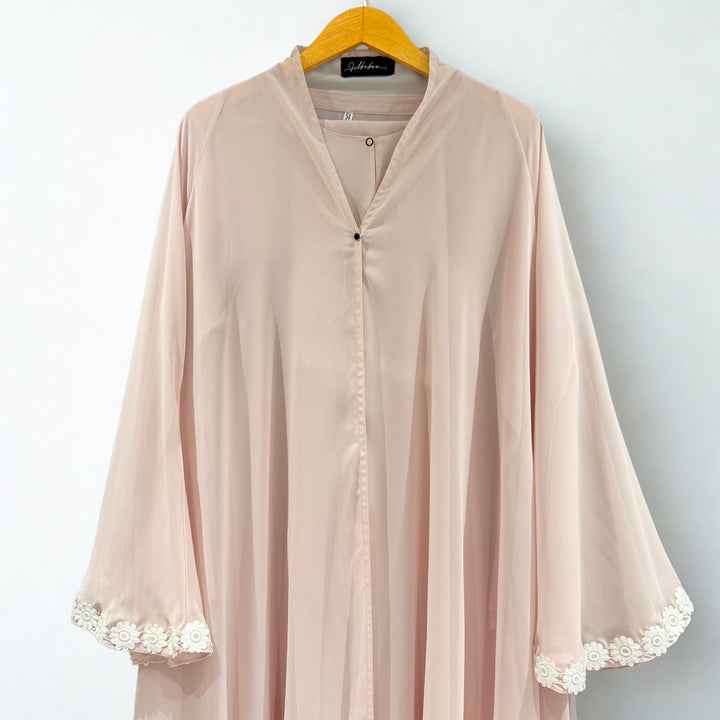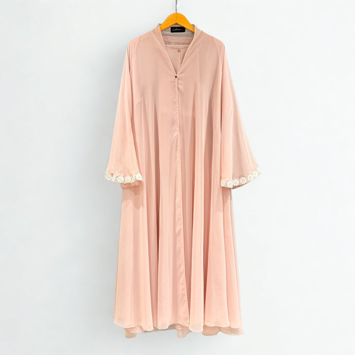 Light Pink Double Layer Chiffon Abbaya with Matching Hijab