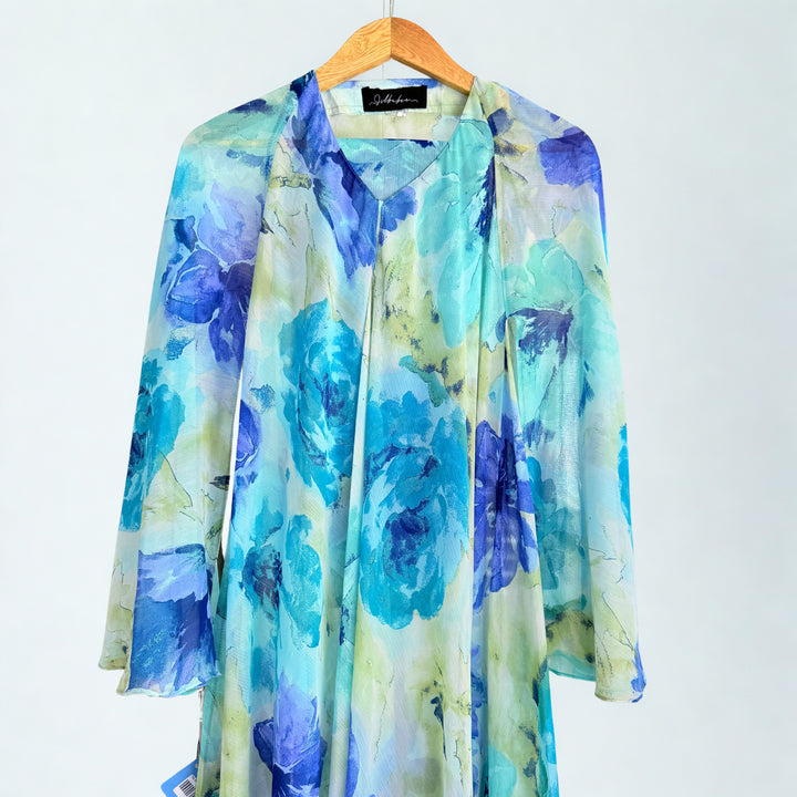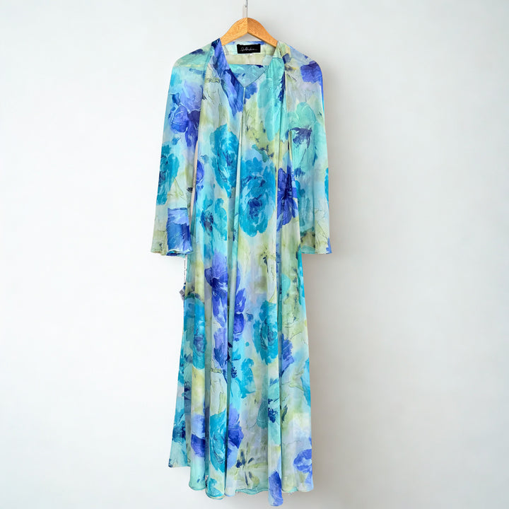 Sea Blue & Dark Blue Printed Abaya with Matching Hijab