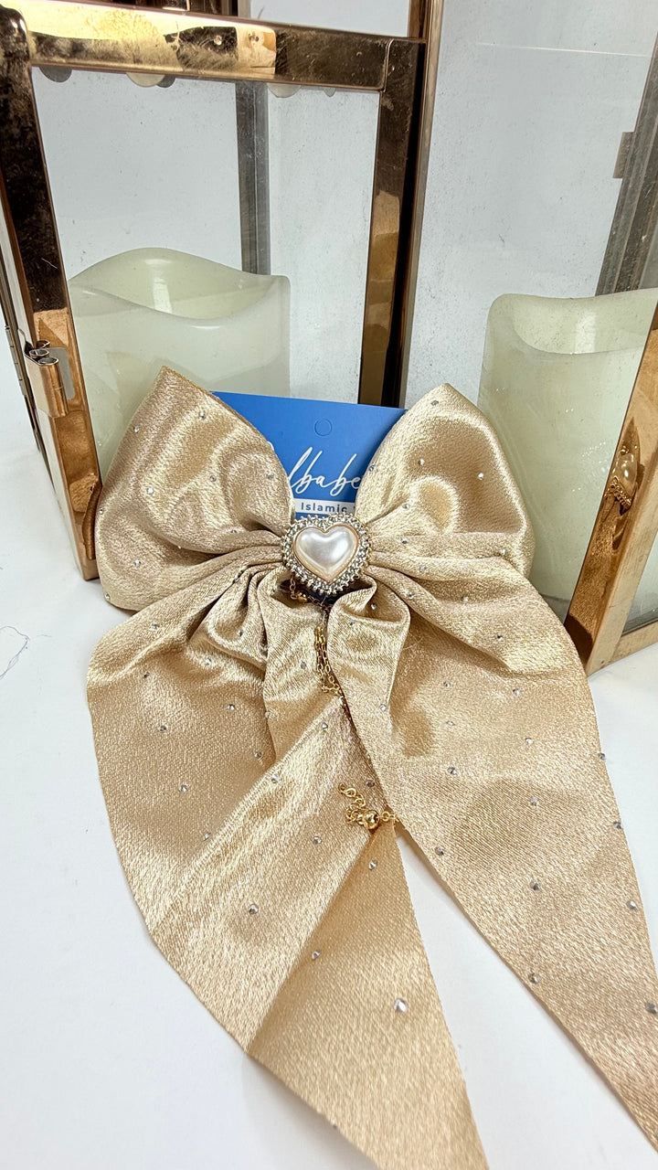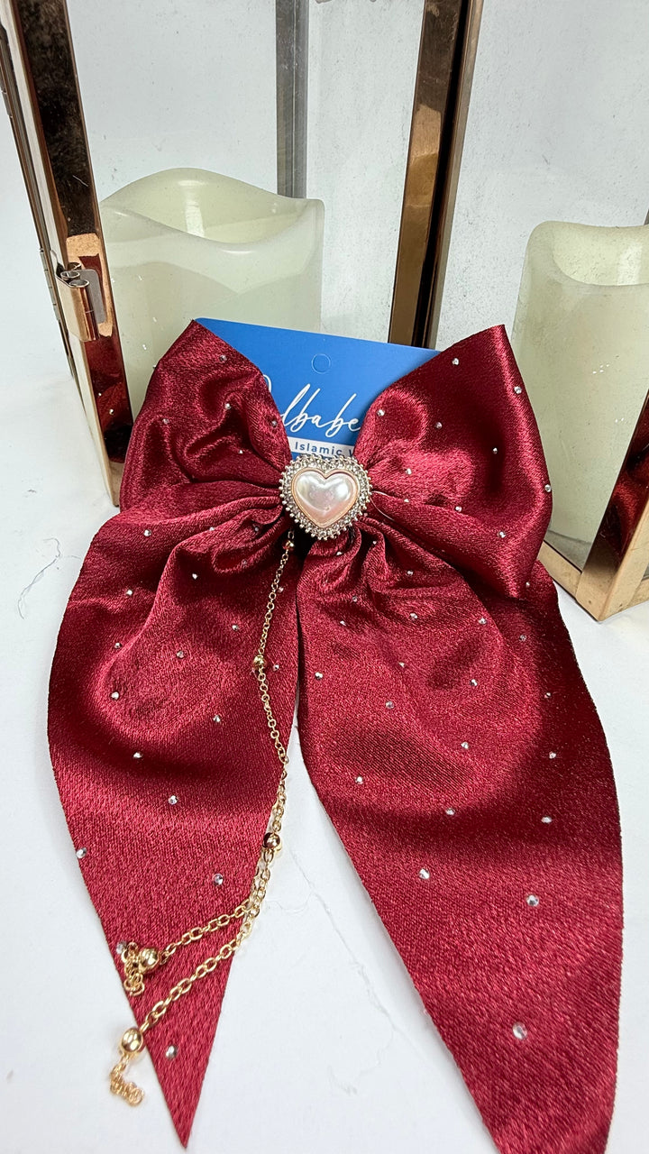 Silk Mukaish Bow With Heart Stone