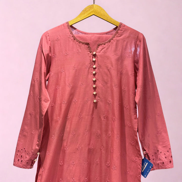 Tea Pink chicken kari suit with border